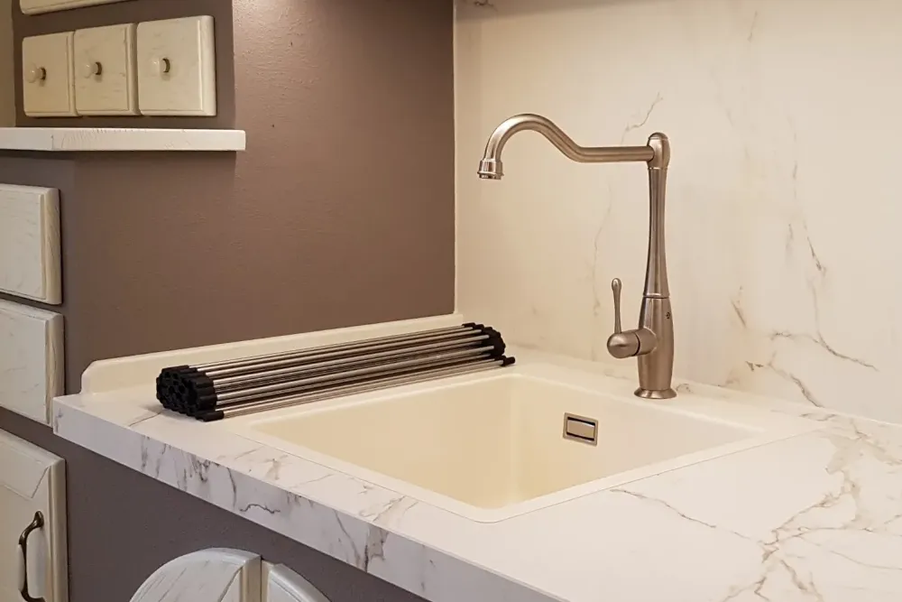- vielfältige Materialien, wie Quarzstein, Naturstein, Keramik, Holz oder Fliesen, die sich durch ihre Qualität auszeichnen, in Pflegeleichtigkeit, Belastbarkeit und Optik jedoch unterscheiden