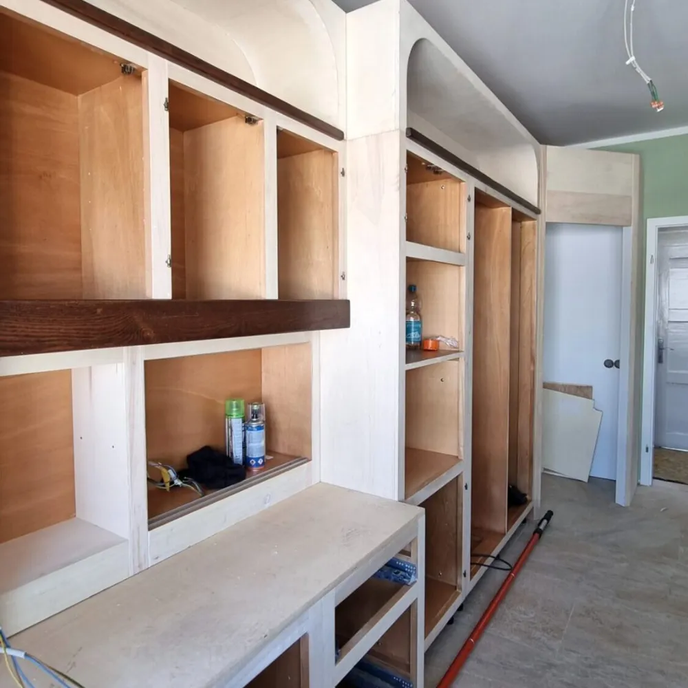 Alle Sockel- und Kranzleisten, Zier- und Wischleisten, Hängeschränke, Zierelemente und sogar der Küchentisch mit Stühlen werden passend zu deiner Front gefertigt.